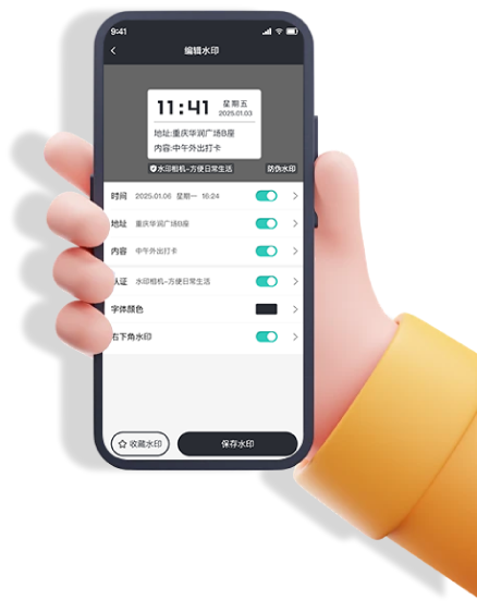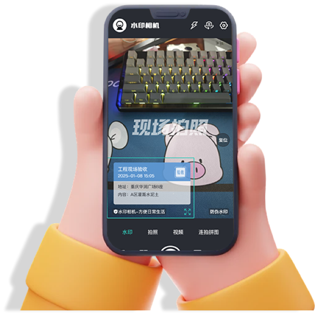 应用支持超高清拍照和视频水印录制,确保水印信息